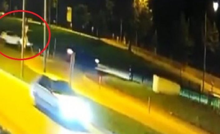 Kaza, dün gece merkez Osmangazi ilçesi Yunuseli Mahallesi Alman Deresi’nde meydana geldi. Edinilen bilgiye göre, kontrolden çıkan cip, önce refüjü aştı, sonrasında 5 metrelik yükseklikten dereye uçtu. O anlar ise güvenlik kamerasına yansıdı.