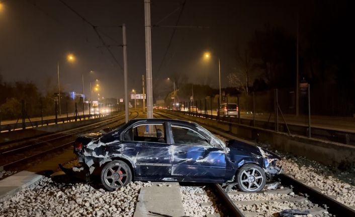 Bursa’da kontrolden çıkan otomobil metro raylarına girdi