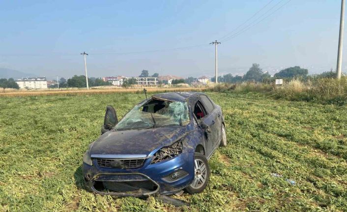 Bursa’nın İnegöl ilçesinde kontrolden çıkan otomobilin tarlaya uçtuğu kazada sürücü yaralandı.