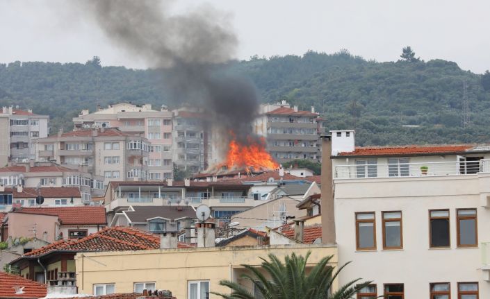 Bursa’nın Mudanya ilçesinde bir apartmanın çatısında çıkan yangın devam ediyor. İtfaiye ekipleri yangına müdahale ederken, alt katta 2 daire kullanılamaz hâle geldi.