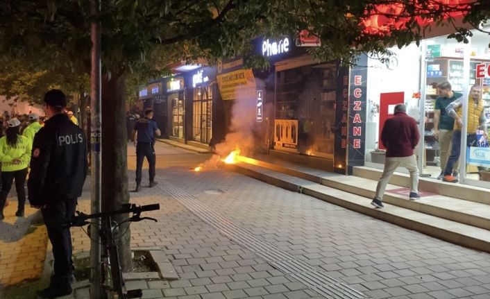 Olay, İnegöl ilçesinde meydana geldi. Galatasaray’ın şampiyon olması ile kutlamalar için sokağa çıkan taraftarlar, bir süre sonra Fenerbahçeliler Derneği’nin önüne geldi. Burada bir taraftar, yaktığı meşaleyi derneğe doğru fırlattı. Bunun üzerine polis ekipleri, taraftarı etkisiz hale getirdi. Yapılan üst aramasında üzerinden bıçak çıkan taraftar gözaltına alındı.