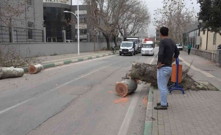 Öğle saatlerinde etkisini artıran lodos Bursa’nın birçok bölgesinde çatıları uçururken ağaçları kökünden söktü. Gürsu ilçesi Yenidoğan mahallesinde rüzgarın şiddetine dayanamayan çınar ağacı yoldan geçen toplu taşıma minibüsünün üzerine devrildi.