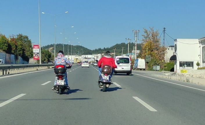 Bursa’da iki motosiklet sürücüsü trafiğin yoğun olduğu Mudanya yolunda tehlikeli hareketler sergileyerek seyahat ettiği görüntüler cep telefonu kamerasına yansıdı.