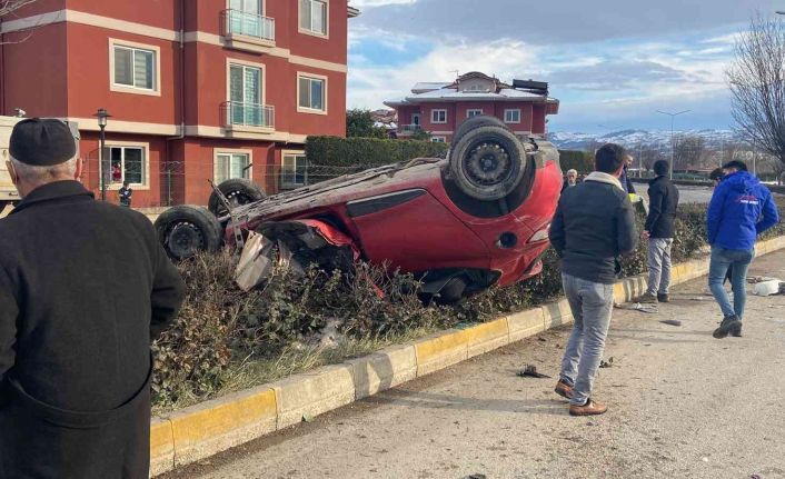 Bursa’da otomobil aydınlatma direğine çarpıp takla attı: 2 yaralı