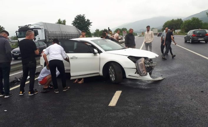 Kaza, saat 17.00 sıralarında Bursa-Ankara karayolu üzeri İnegöl’ün Çitli Mahallesi kavşağında meydana geldi. İnegöl’den Bozüyük istikametine seyir halinde olan sürücü Seyit Ali Kimsesiz (18) yönetimindeki 26 SH 429 plakalı otomobil, yağış sebebiyle kayganlaşan yolda sürücüsünün kontrolünden çıktı. Savrulan araç bariyerlere çarparak durabildi. Kaza sonucu sürücü ile araçta bulunan yolcular Kübra Cantek (19), Ahmet Efe Y. (17) ve Semanur N.(17) yaralandı. Yaralılar olay yerine sevk edilen 112 Acil Servis ekipleri tarafından İnegöl Devlet Hastanesine kaldırıldı. Yaralıların sağlık durumlarının iyi olduğu öğrenilirken, kazayla ilgili tahkikat başlatıldı.