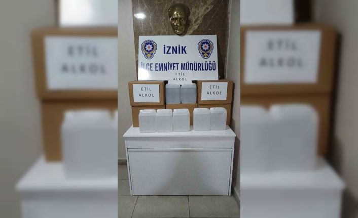 Bursa’nın İznik ilçesinde polis ekiplerinin ortak çalışması sonucu bir iş yeri ve araçta toplam 135 litre etil alkol ele geçirildi.