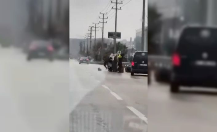 Bursa’nın Kestel ilçesinde seyir halindeki sürücü ile kurye arasında çıkan kavgada tekme ve yumruklar havada uçuştu. Araçtan inen sürücü, motokuryeyi darp ederken, kadınlar olayı ayırmak için var gücüyle çabaladı. Araçtan inen bir çocuk ise o anları şaşkınlıkla izledi.