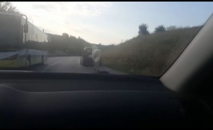 Edinilen bilgiye göre, İnegöl-Oylat yolunda bir sürücü, atı araca iple bağlayıp yola çıktı. Sabah saatlerinde yol üzerinde at ile sürücüyü görenler şaşkınlıklarını gizleyemedi. Tepkilere aldırmayan sürücü, o şekilde yoluna devam etti. O sırada yoldan geçen başka bir sürücü ise o anları cep telefonuyla kaydetti.