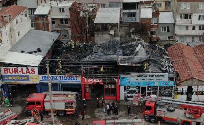 Bursa’da şehir merkezinde bir lastikçide başlayan yangın, yanındaki 3 işyerine de sıçradı. Alevler gökyüzüne yükselirken, siyah dumanlar şehrin bir çok yerinden görüldü.