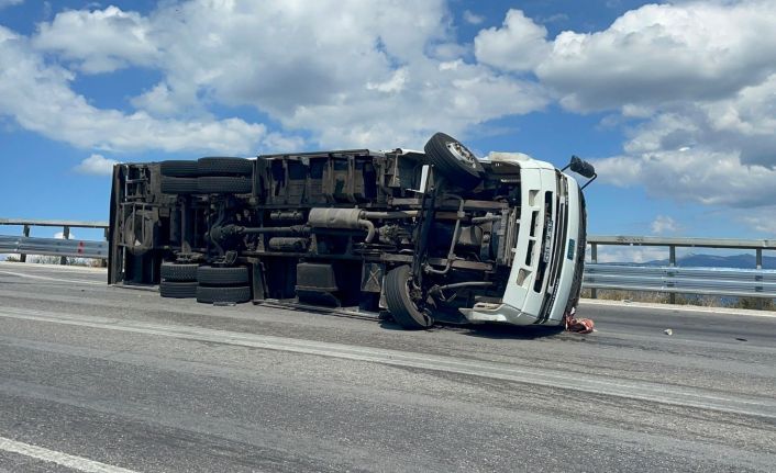 Yenişehir’den İznik istikametine yokuş aşağıya ilerleyen kamyon virajı alamayınca kontrolden çıkarak devrildi.