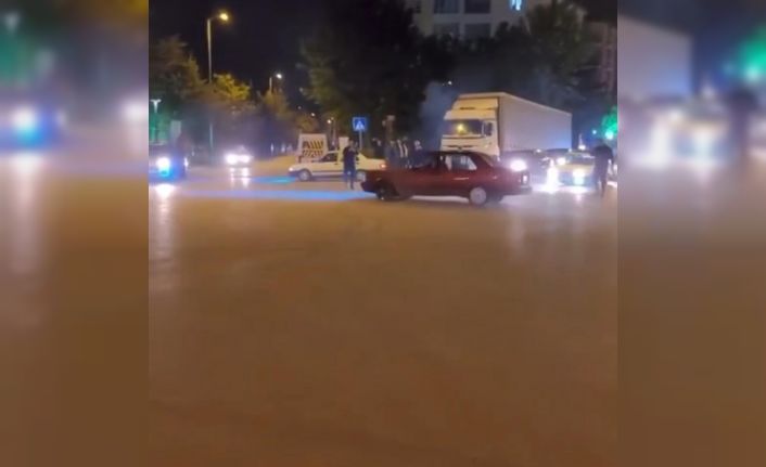 Merkez Yıldırım ilçesi Millet Mahallesi’nde bir otomobil sürücüsü gece yarısı ne kendini ne de çevredekileri düşündü. Kavşak üzerinde dakikalarca drift atarak dönen sürücü hem çevredekileri, hem de diğer sürücüleri isyan ettirdi. Kimseyi umursamayan trafik magandası vatandaşların kamerasına yansırken, sürücünün yanlayarak dönmesine kimse anlam veremedi.
