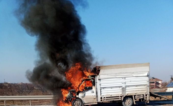 Büyükbaş hayvan yüklü kamyonet alev alev yandı