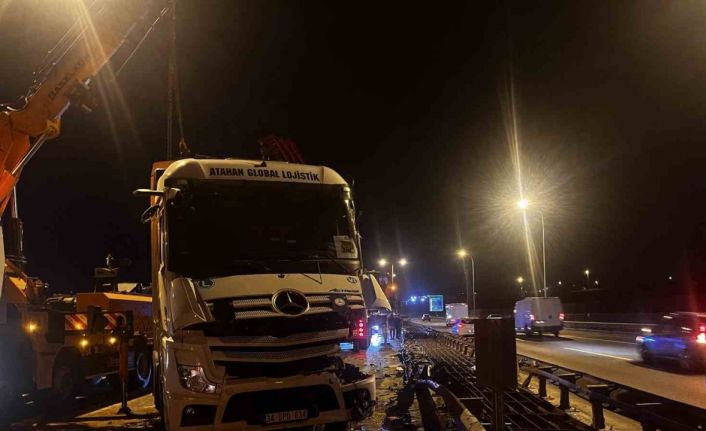 Büyükçekmece TEM Otoyolu’nda kontrolden çıkarak bariyerlere çarpan tır devrildi. Kazada sürücü yaralanırken, bir süre trafiğe kapatılan yol kontrollü olarak açıldı.