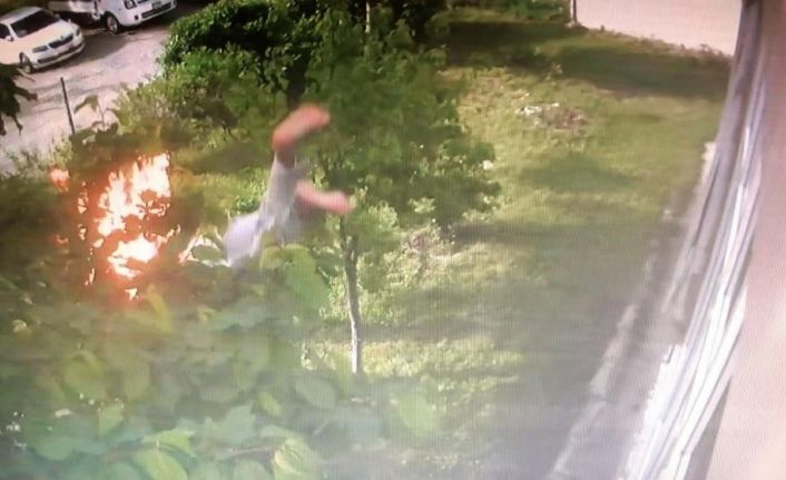 Büyükçekmece Mimaroba Mahallesi’nde bulunan bir sitede sabah saatlerinde 2 çocuk annesi bir kadın, oturduğu evin 6’ncı katından düşerek hayatını kaybetti. Polis ekipleri olayla ilgili inceleme başlatırken, kadının düşme anına ait görüntüler ortaya çıktı. Güvenlik kameralarına yansıyan görüntülerde kadının adete alev topu gibi yere düştüğü ve yere düştükten sonra da yanmaya devam ettiği görülüyor.