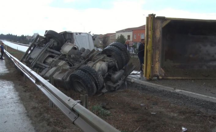 Kaza, saat 11.45 sıralarında E-5 Karayolu Büyükçekmece ilçesi Güzelce mevkii Beylikdüzü istikametinde yaşandı. Edinilen bilgilere göre, 34 DB 3036 plakalı İ.H.T. hakimiyetindeki hafriyat kamyonu yağmur nedeniyle seyir halindeyken kaymaya başladı. Kontrolden çıkan kamyon bariyerlere çarptıktan sonra devrildi. Kazada yaralanan İ.H.T. vatandaşlar tarafından araçtan çıkarıldıktan sonra ambulans ile hastaneye kaldırıldı. Olay sonrası anayolda trafik durdu.