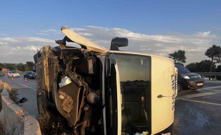 Büyükçekmece’de kontrolden çıkan boş servis minibüsü devrildi. Kaza nedeniyle yolda yoğun trafik oluştu.
