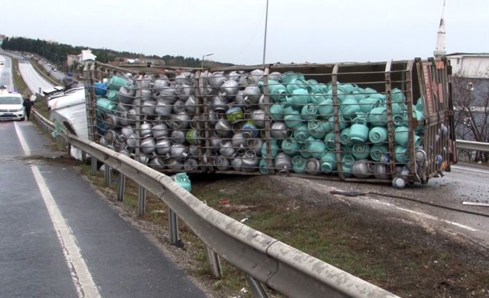 Olay, saat 12.30 sıralarında Büyükçekmece Güzelce mevkii Beylikdüzü istikameti E-5 Karayolu üzerinde meydana geldi. Yener K. kontrolündeki 24 AAE 731 plakalı tüp yüklü kamyonet, yağışında etkisi ile kontrolden çıkarak bariyere çarpıp devrildi. Olayı gören diğer sürücüler polis, sağlık ve itfaiye ekiplerine haber verdi. Ağır yaralanan sürücü vatandaşların da yardımıyla kamyonetten çıkarılıp ambulans ile hastaneye kaldırıldı. Olay yerinde itfaiye ekipleri ise patlama riskine karşı hazır bekledi. Aynı istikamete giden araçlar ise yan yola yönlendirilirken sürücünün hastanedeki tedavisi devam ediyor.