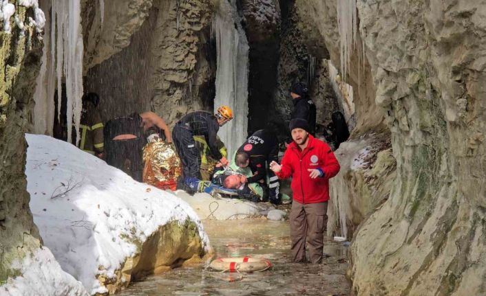 Öte yandan olayı gören Kamil Akmaz, park ettiği aracına bakmak için aşağıya indiğini söyleyerek, "Araç Danaköy tarafından geliyordu. Yolda buz vardı ve duramayınca kayarak, kanyona dereye uçtu. Benim gözümün önünde olunca hemen arayıp yardım istedim" dedi.