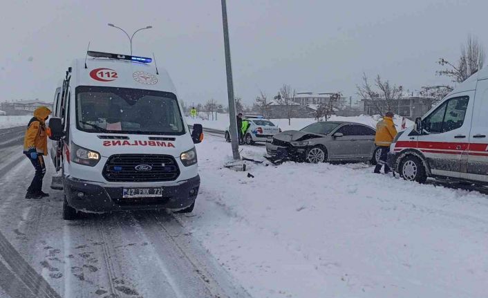Konya’nın Seydişehir ilçesinde buzlanma nedeni ile aydınlatma direğine çarpan otomobildeki 2 kişi yaralandı.