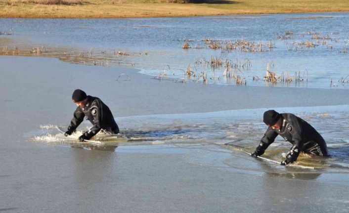 Tokat’ta 14 gündür kayıp olan 5 çocuk annesini, SAK timi buzları kırarak Karacagöl’de de aradı.