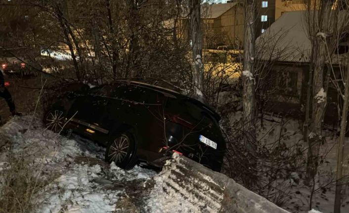 Buzlu yolda kayan otomobil evin bahçesine düştü: 1 yaralı