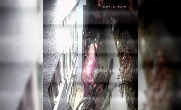 Aydın’ın Didim ilçesinde bir ikametten bisiklet çalan hırsız, güvenlik kameralarına yakalandı. Hırsız apartmanın önünden çaldığı bisiklete binerek bölgeden uzaklaştı.