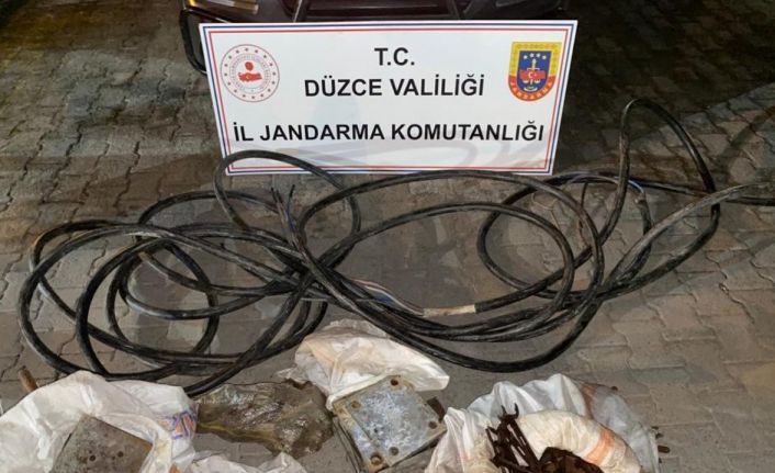 DÜZCE(İHA) – Düzce’de jandarma ekipleri yaptıkları uygulama sırasında durdurdukları araçta yapılan aramada çalıntı olduğu belirlenen bakır kablo ve demir ele geçirildi.