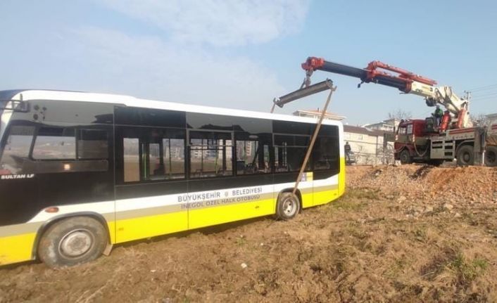 Bursa’nın İnegöl ilçesinde meydana gelen kazada sürücüsünün kontrolünden çıkan özel halk otobüsü tarlaya uçtu, sürücü yaralandı.