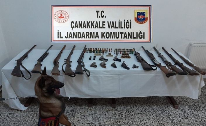 Çanakkale’de hassas burunlu bomba arama köpeği ile gerçekleştirilen operasyonda çok sayıda silah ve mühimmat ele geçirildi.