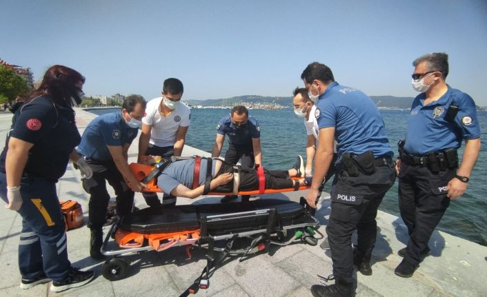 Olay bugün saat 10.30 sıralarında Kayserili Ahmet Paşa Caddesi’nde bulunan Subay Orduevi karşındaki kordon boyunda meydana geldi. Korona virüs (Covid-19) dolayısıyla kapalı olan sahilde bir adamın denize düştüğü ihbarını alan polis ekipleri, olay yerine gitti. Yaşlı adamın suda hareketsiz bir şekilde yattığını gören polislerden birisi denize atlayarak yaşlı adamı çıkarttı. Olay yerine gelen 112 Acil Servis ekipleri, Ramazan Bozkurt (80) isimli yaşlı adama ilk müdahaleyi olay yerinde yaptı. Baygın halde olan Ramazan Bozkurt, daha sonra Çanakkale Onsekiz Mart Üniversitesi (ÇOMÜ) Sağlık, Uygulama ve Araştırma Hastanesi’ne kaldırılarak tedavi altına alındı.