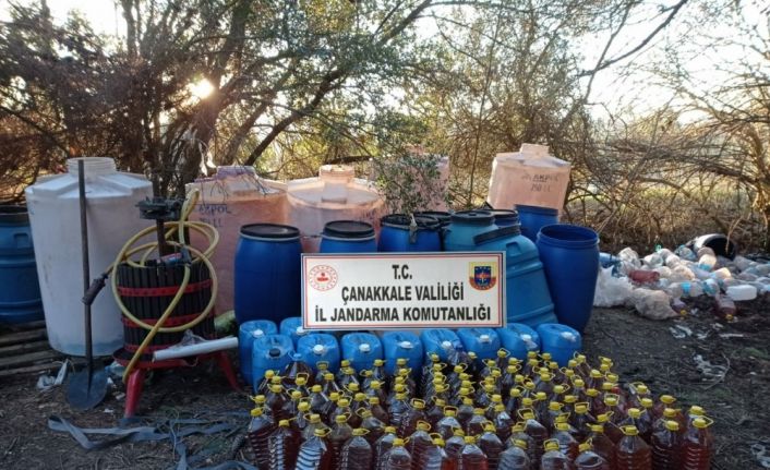Eceabat’ta kaçak içki imal ve ticareti yapıldığı istihbaratını alan Çanakkale İl Jandarma Komutanlığı ekipleri, teknik ve fiziki takip sonucu H.Ç. isimli şahsın ev, araç ve iş yerinde arama gerçekleştirdi. Yapılan aramalarda satışa hazır halde plastik varil ve şişlere doldurulmuş bin 510 litre şarap ve 1 adet üzüm sıkma aleti ele geçirildi. Ayrıca kaçak içki imalinde izinsiz olarak çalıştırıldığı tespit edilen Pakistan uyruklu bir mülteci yakalandı. Ele geçirilen kaçak içkilere el konularak, şüpheli H.Ç. ile Pakistan uyruklu mülteci hakkında adlî ve idarî işlem başlatıldı.Çanakkale’de kaçak içki operasyonu: 2 gözaltı