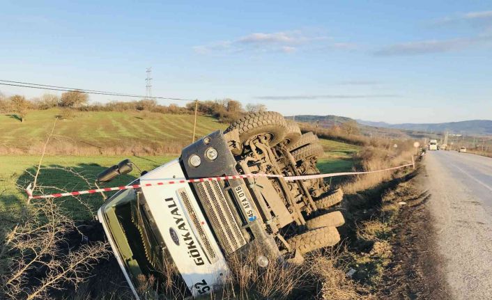 Çanakkale’nin Çan ilçesinde kömür yüklü kamyon, il karayolunun 10’uncu kilometresi olan Büyükpaşa köyü yol kavşağı yakınında şarampole devrildi.
