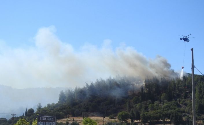 Yangın ekiplerin havadan ve karadan müdahalesiyle kontrol altına alındı. Bölgede soğutma çalışması devam ederken, yangında 2 dönüm alan zarar gördü.