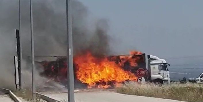Çanakkale’nin Ezine ilçesinde alev topluna dönen tır dorsesi cep telefonu kameraları ile görüntülendi.