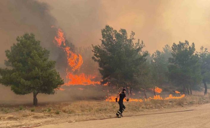Çanakkale’deki orman yangınına havadan ve karadan müdahale devam ediyor. Kayadere köylüleri hayvanlarını kurtarmak için boş arazilere götürmeye çalışıyor.