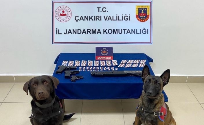 Edinilen bilgiye göre, Çankırı İl Jandarma Komutanlığı ekipleri tarafından, ’uyuşturucu madde imal ve ticareti’ suçlarını işleyen şüphelilere yönelik yürütülen istihbari çalışmalar çerçevesinde 3 şahsın evinde arama yapıldı. Yapılan aramalarda 231 adet sentetik hap, 3 adet kurusıkı tabanca ve 1 adet pompalı tüfek ele geçirildi.