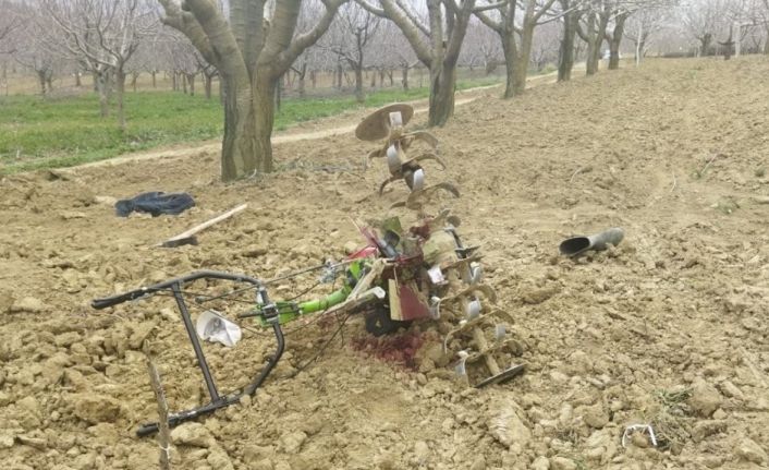 Manisa’nın Demirci ilçesinde tarlasında çalışırken çapa motoruna ayağını kaptıran bir çiftçi ağır yaralandı.
