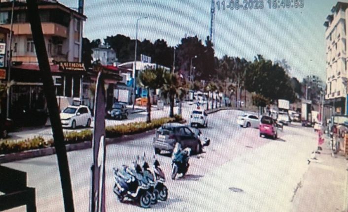 Antalya’nın Manavgat ilçesinde motosiklete çarpan otomobil, yaralı motosiklet sürücüsüne aldırış etmeksizin olay yerinden kaçtı. Plakadan yapılan kontrolde, kaza yapan aracın kiralık olduğu belirlendi. Kaza anı ise güvenlik kamerasına yansıdı.