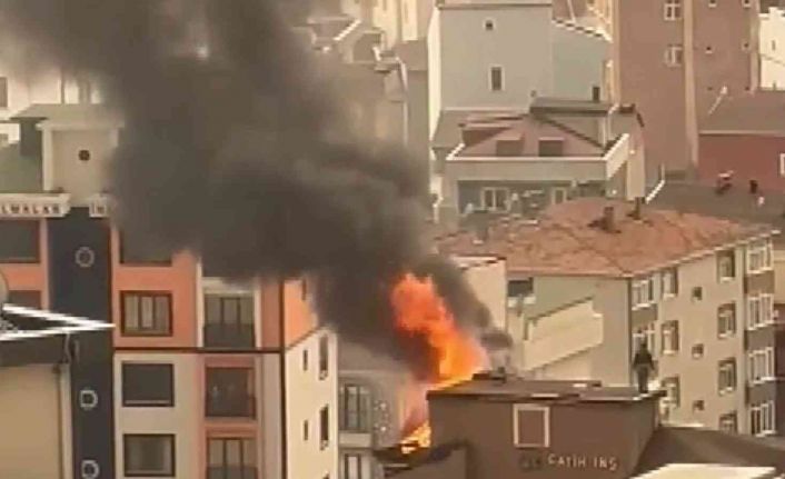 İstanbul Kartal’da 7 katlı bir binanın çatısında izolasyon çalışması yaparken yangın çıktı. İzolasyon çalışması yapan işçi, yanan çatıyı bırakıp aşağıya inmedi. O görüntüler çevrede bulunan vatandaşların cep telefonlarına yansıdı.