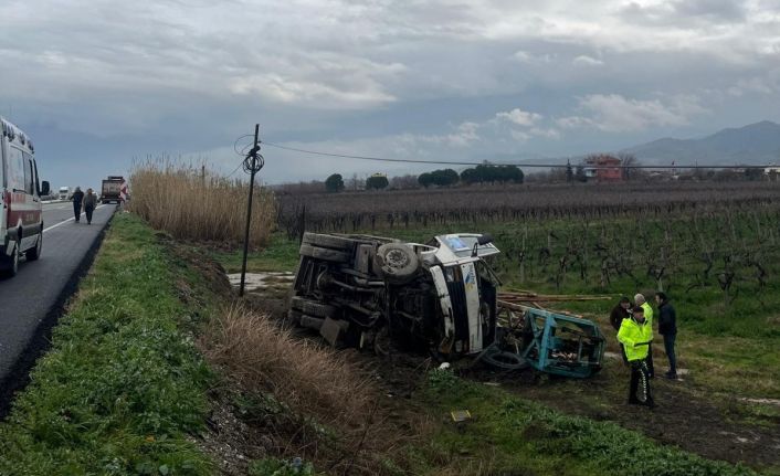 Manisa’nın Salihli ilçesinde çekiciye bağlı kamyonun savrularak yol kenarındaki şarampole uçması sonucu meydana gelen kazada 1 kişi yaralandı.