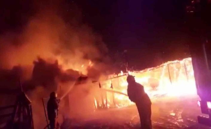 Ahırın alev alev yandığı ve itfaiyenin yangına müdahale ettiği anlar cep telefonu kamerasına yansıdı.