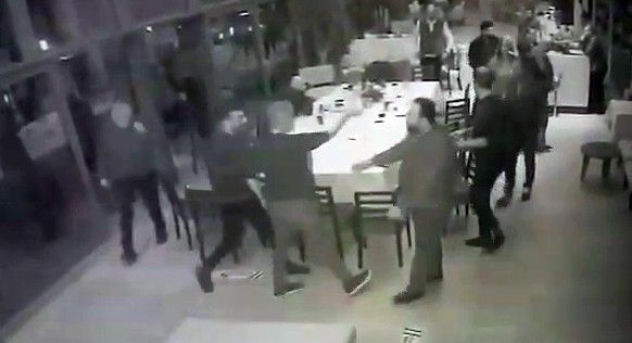 Sarıyer’de Cengiz Kurtoğlu ile iş insanı arasındaki kavga anı ise güvenlik kamerasına yansıdı. Görüntülerde, masada oturdukları sırada tartışma yaşandığı ve çevredeki vatandaşların araya girmeye çalıştığı ve ünlü sanatçının güçlükle sakinleştirildiği görülüyor.