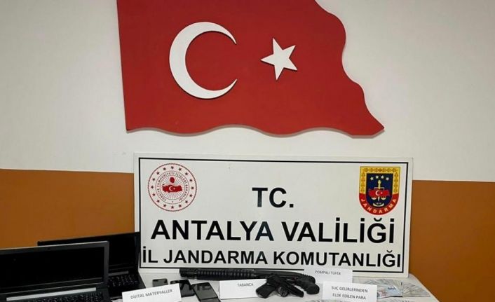 Alanya Cumhuriyet Başsavcılığı koordinesinde; Antalya İl Jandarma Komutanlığı Siber Suçlarla Mücadele Şube Müdürlüğünce Alanya ilçesi Konaklı Mahallesi’nde faaliyet gösteren cep telefonu ve telefon aksesuarı satışı yapan iş yerinde, 3 şüphelinin yasadışı bahis oynattığı tespit edildi. Dün Alanya İlçe Jandarma Karakol Komutanlığına bağlı ekiplerin eşlik ettiği operasyonda 4 ayrı adrese de baskın düzenlendi. Operasyonda, 8 telefon, 3 laptop, 5 sim kartı, 5 hafıza kartı, 6 USB bellek, kuru sıkı tabanca ve pompalı tüfek ile bahisten elde edildiği değerlendirilen 48 bin 400 TL ele geçirildi.