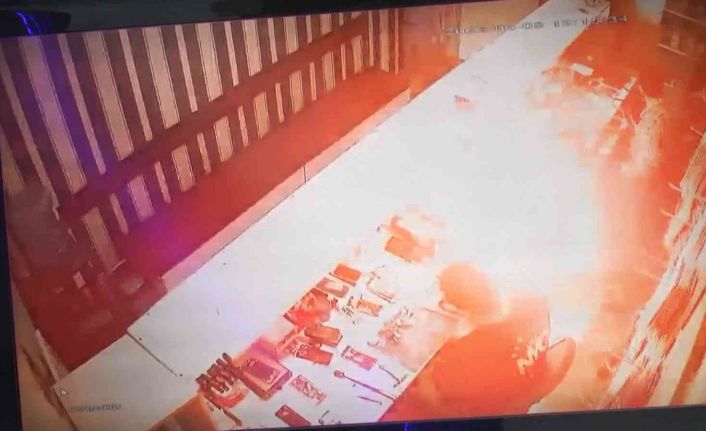Gaziantep’te tamir edilecek olan cep telefonunun bataryası adeta bomba gibi patladı. Alev topuna dönen cep telefonunun patlama anı anbean kameralara yansıdı.