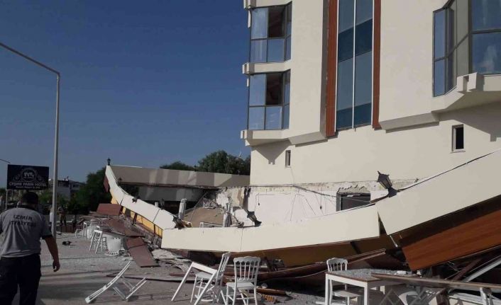 İzmir’in Çeşme ilçesinde, bir otelin terası büyük bir gürültüyle çöktü, şans eseri olayda ölen ya da yaralanan olmadı.