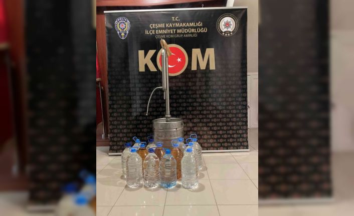 Edinilen bilgiye göre, Çeşme İlçe Emniyet Müdürlüğü Kaçakçılık ve Organize Suçlarla Mücadele (KOM) Grup Amirliği ekipleri, Reisdere Mahallesi’nde sahte alkol ticareti yaptığı iddia edilen H.Ö. adlı şahsın ikametine baskın yaptı. KOM ekiplerinin yaptığı aramada, 10 adet 5 litrelik plastik su şişeleri içerisinde toplam 50 litre rakı, 3 adet 5 litrelik plastik şişe içerisinde 15 litre viski ve 1 adet alkol damıtma ünitesi ele geçirildi. Ele geçirilen sahte içkiler ve damıtma ünitesi muhafaza altına alınırken, olayla ilgili soruşturma başlatıldı.