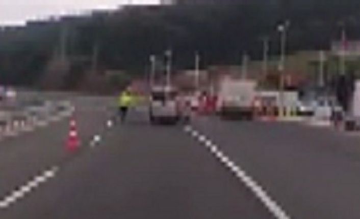Öte yandan olayın şokuyla korku dolu anlar yaşayan polis, sürücünün kastı olmaması nedeniyle kendisine herhangi bir işlem yapmadı. Sürücünün evraklarını inceleyen polis, sürücüye de ’iyi yolculuklar’ diledi.