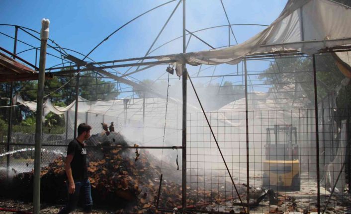 Antalya’da hazır çim üreten işletmenin Hindistan cevizi kabuğu deposu olarak kullandığı serada çıkan yangın güçlükle söndürüldü. Büyük çapta maddi hasarın meydana geldiği yangında, 2 çim biçme makinesi de zarar gördü.