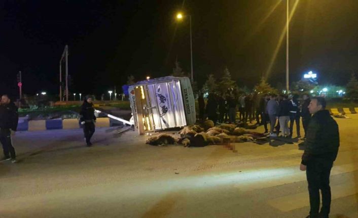 Cip ile kamyonet çarpıştı: 25 hayvan telef oldu