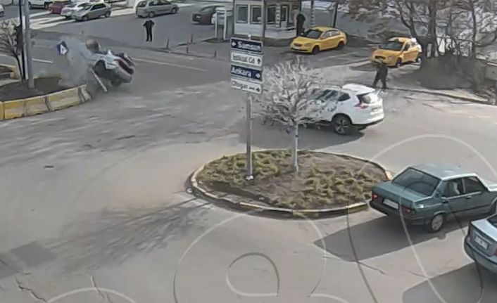Kırıkkale’de süratle ilerleyen otomobil, kavşaktan geçmeye çalışan cipe çarparak takla attı. Kaza anı ise Kent Güvenlik Sistemi (KGYS) kamerasına yansıdı.